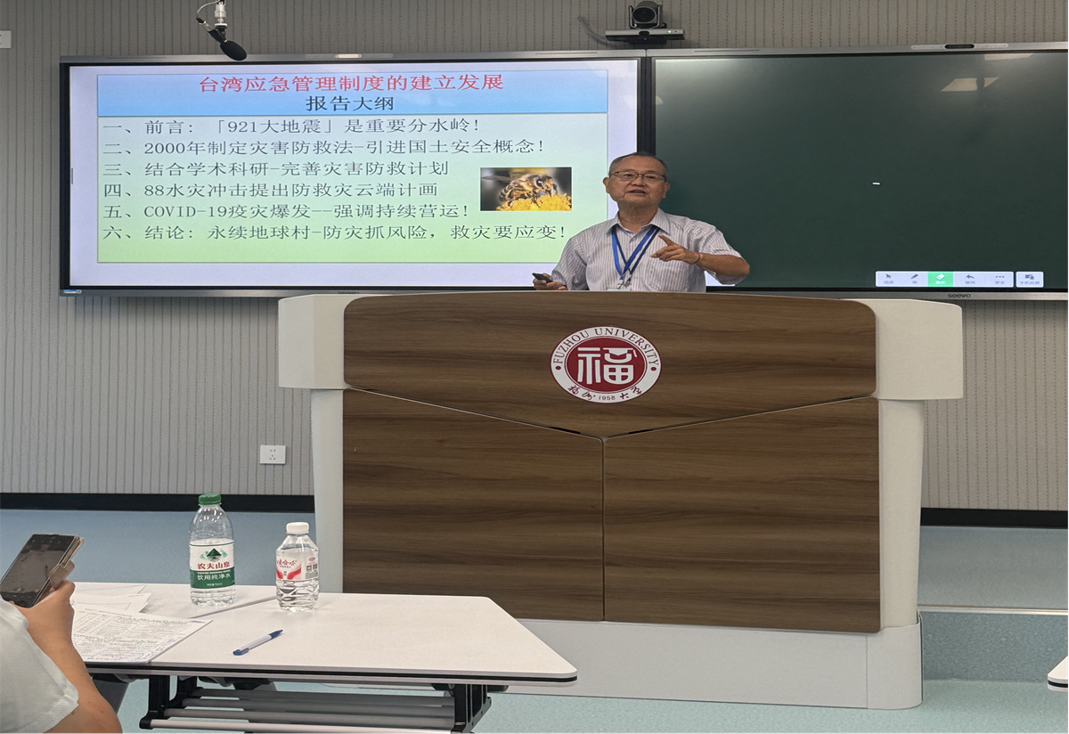 台北大学公共行政暨政策学系张四明教授作《台湾灾防告警细胞广播服务之发展经验与启示》专题报告;中国科学技术大学科技哲学系执行主任徐飞教授作《全球变局下的中国科技产业发展》专题报告;四创科技有限公司研究院院长单森华教授作《城镇洪涝风险数智化防控技术研究》专题报告;福州大学海上丝绸之路城市安全规划与管理国际联合研究院郑则群教授作《海峡两岸融合大背景下的立体交通构建与综合效益研究》专题报告。